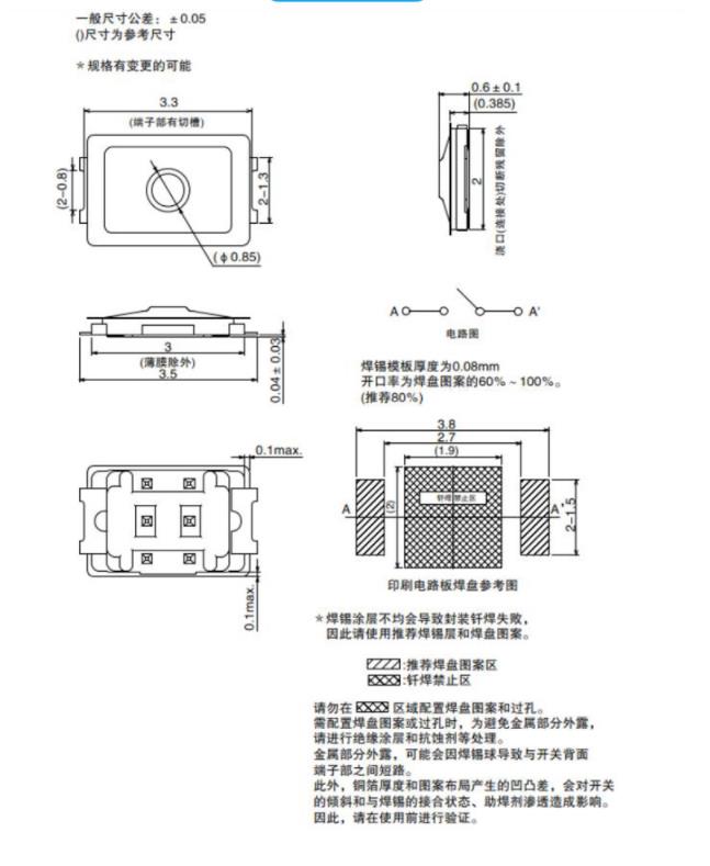 產品簡介:型號:2*3*0.6輕觸開關 操作力度:160gf/240gf/330gf 壽命:≥30萬